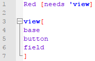 Red creates GUIs by describing them in a view block. This description is very straightforward and in it's simplest form would be: